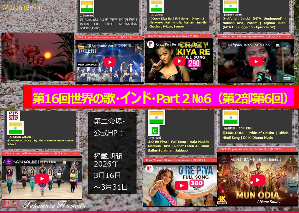 💐良い歌に出会いましたね。世界には、日本人が知らない良い歌がまだまだ眠っています。私の「世界の歌」や「世界音楽祭」をご覧になれば分かると思います。